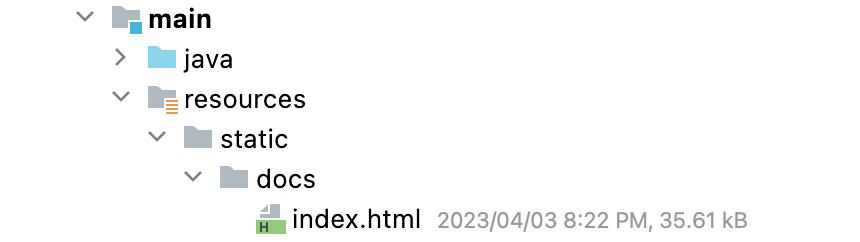 그리고 main/resources/static/docs 디렉토리를 만들어 줍니다.
