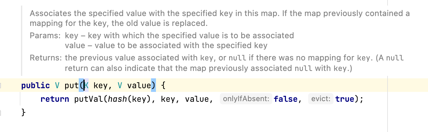 밑의 사진은 HashMap의 put() 메서드의 내부 동작을 캡처한 사진입니다.