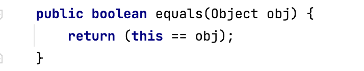 Member 클래스의 equals() 메서드가 존재하지 않는 거처럼 보이지만 기본적으로 자바의 모든 클래스는 Object 클래스를 자동으로 상속받게 되는데 부모 클래스인 Object 클래스에 equals() 메서드가 존재하기 때문에 자식 클래스(여기서는 Member 클래스)에서 override를 하지 않는 이상 Object에서 정의해둔 equals() 메서드를 그대로 사용하게 됩니다.