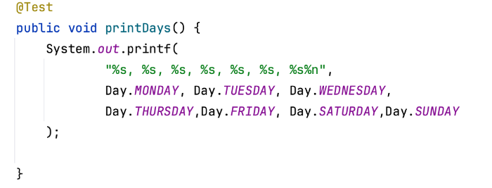 왼쪽 사진처럼 enum type을 정의 후 테스트 코드를 통해 바로 출력하게 되면 어떤 결과가 나오게 될까요?