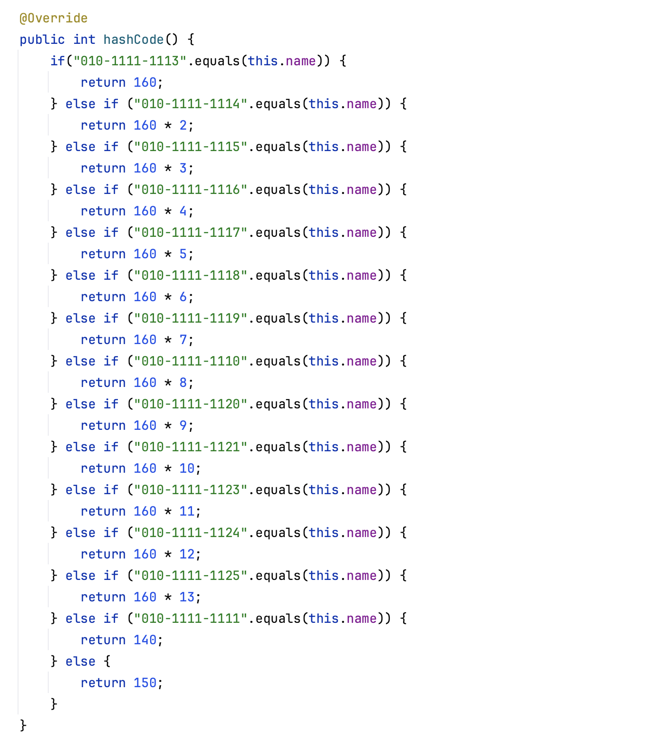 밑의 코드에서 PhoneBook 클래스는 Key와 Hash Table size의 & 비트 연산 결과가 같은 index를 반환하도록 hashCode() 메서드를 오버라이드 하여 하드코딩 한 코드입니다.