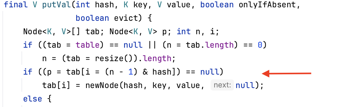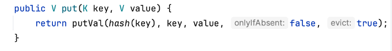 HashMap에 데이터가 등록되는 과정을 조금 살펴보도록 하겠습니다. put() 메서드는 내부적으로 putVal() 메서드를 호출하여 데이터를 추가하게 되는데 이때 Hash Table의 size와 Key의 hash code 값을 & 비트 연산한 값을 Hash Table의 index로 사용하게 됩니다.