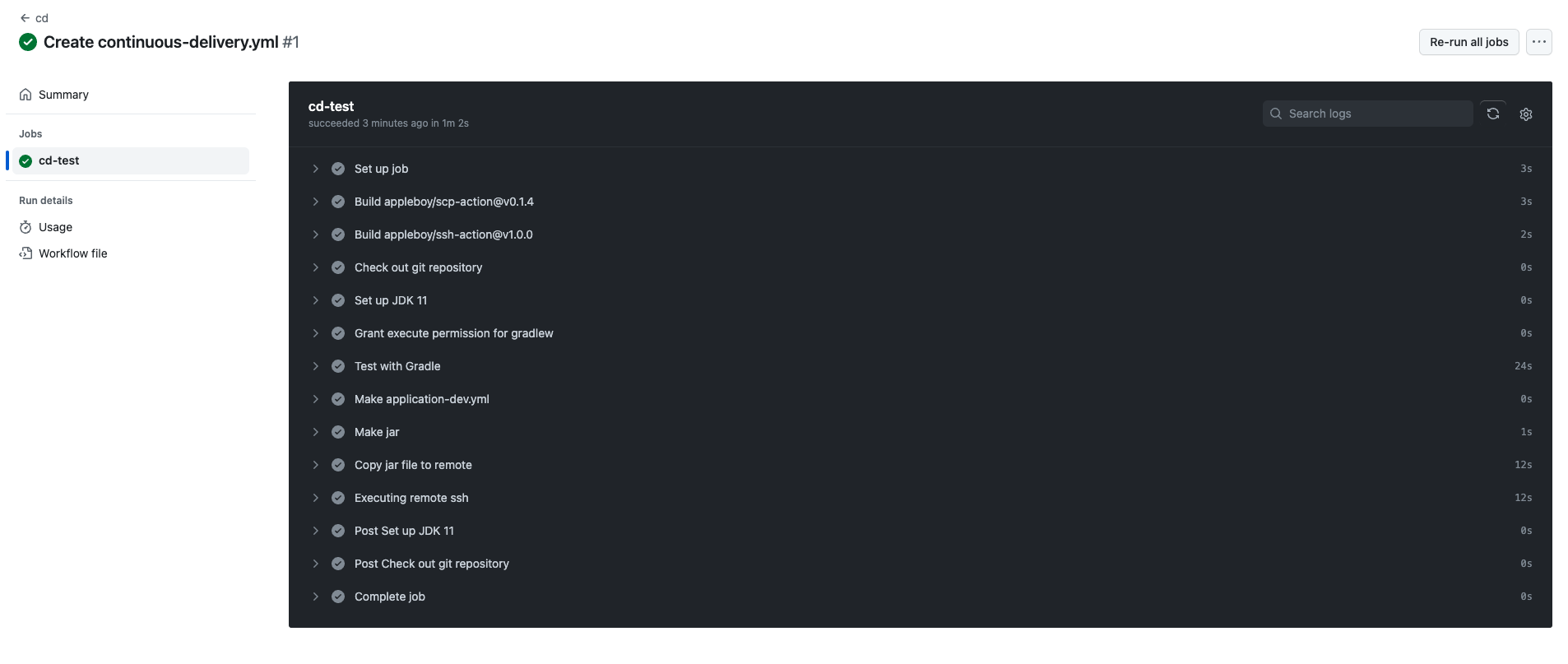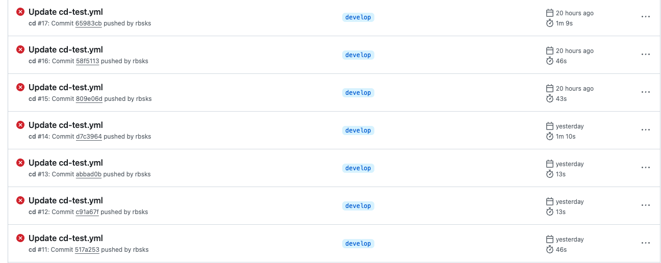 한 번에 성공한 거 같지만 사실 정말 많은 시도 끝에 CD 구축을 성공하였습니다..