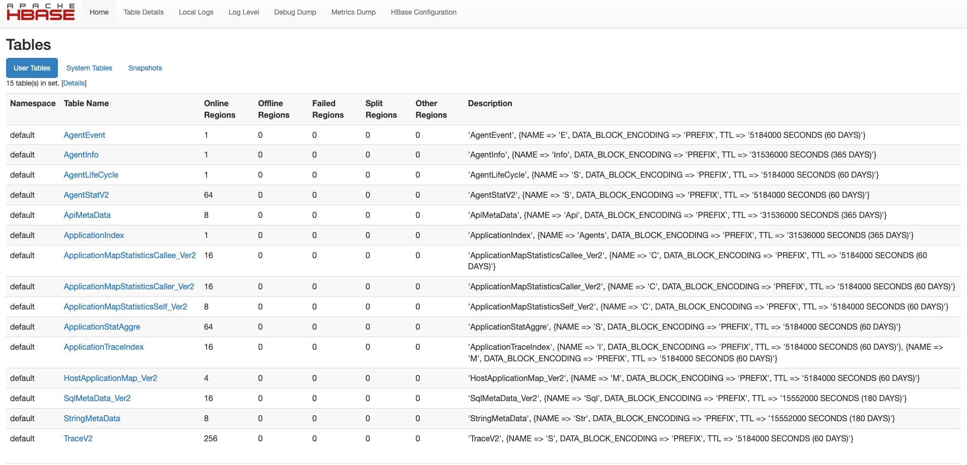 $ ./bin/hbase-1.2.7 shell ./pinpoint-2.5.3/hbase/scripts/hbase-create.hbase