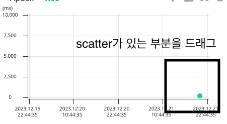 시간 경과에 따른 요청 수와 응답 패턴을 시각화하여 잠재적인 문제를 파악할 수 있으며 차트 위로 드래그하여 트랜잭션을 선택하면 추가 세부 정보를 확인할 수 있습니다.