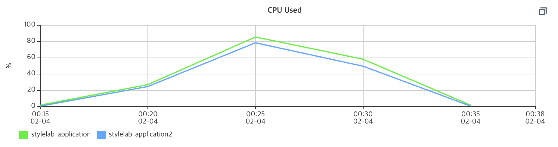 여기서 드는 의문점은 두 개의 인스턴스가 CPU 사용율도 같고 Round Robin Load Balancing을 사용하여 요청의 비율을 50:50으로 나누었는데 scatter chart가 극심한 차이를 보인다는 것이었습니다. 이 의문점의 원인을 파악하지 못하였지만 지속적으로 성능 테스트를 해보면서 원인 파악을 해보도록 하겠습니다.